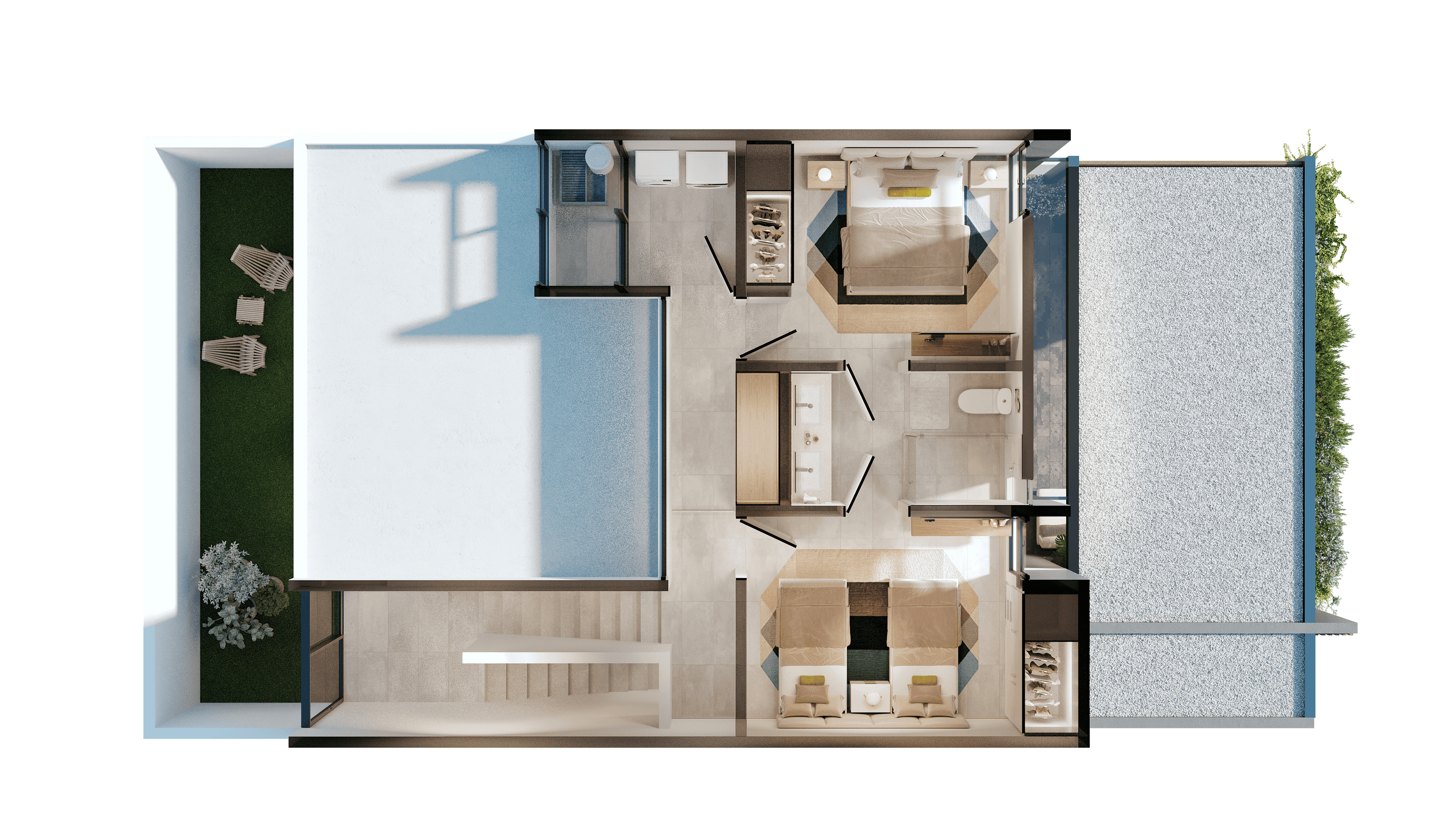 Cada hogar tiene su propio carácter y espacio para respirar. Cada casa es una pieza única de arquitectura, pensada para integrarse de forma natural al entorno.