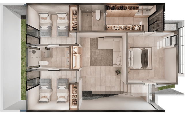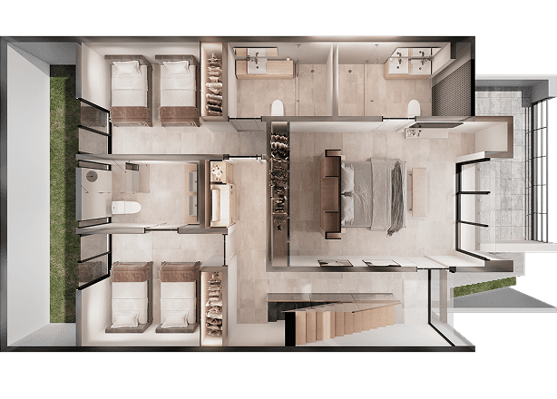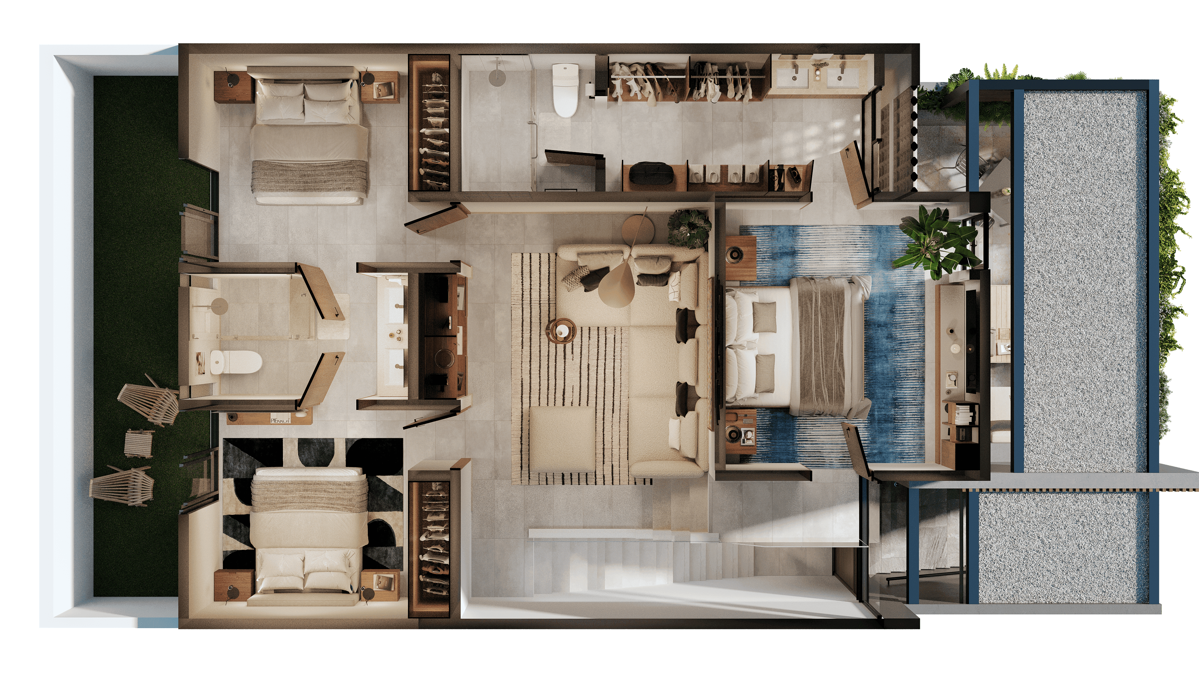 Más de 1,600 m² de amenidades pensadas para disfrutarse a diario: desde un spa que te desconecta del mundo hasta un cine privado que lo vuelve a encender. Gimnasio, salón de yoga, ludoteca, terrazas con asadores, business center... Todo lo que imaginas cuando piensas en descanso, conexión o movimiento, está aquí. A unos pasos de tu casa, pero a años luz de lo ordinario.
